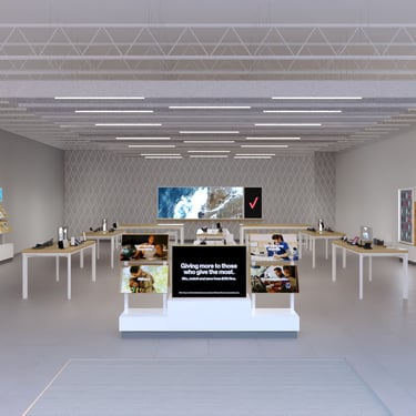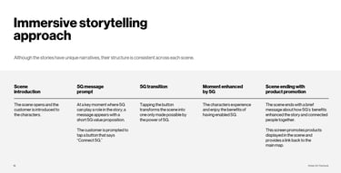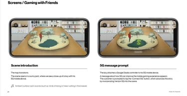 Our approach focuses on using augmented reality (AR) storytelling to vividly illustrate the future with 5G, distinguishing itself from other in-store AR experiences that merely demonstrate the functional link between these two technologies. This playful concept, which consistently pairs 5G and AR, is driven by the core storytelling principles of simplicity and establishing a connection with the audience.