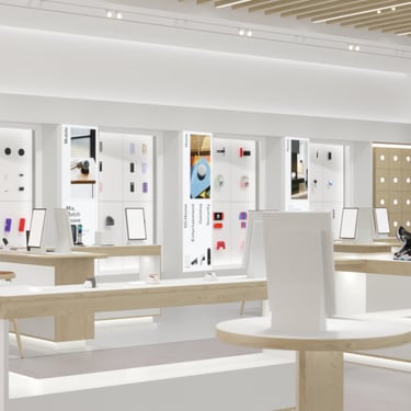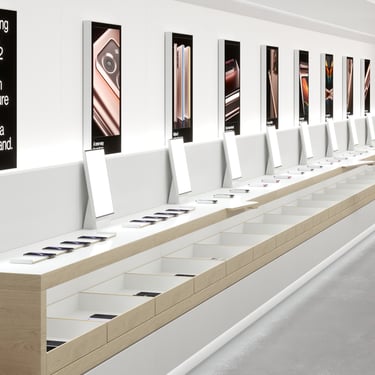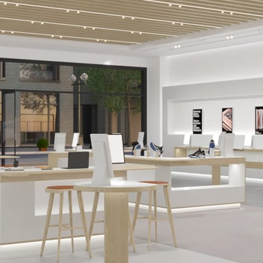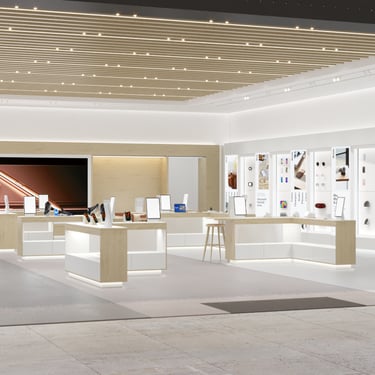 This design features modular floor and wall systems that provide exceptional mobility and easy access to data, enabling a wide range of activities and functions within the space. The flexibility of this design allows it to be adapted for various uses, creating an engaging environment for shoppers and encouraging dynamic interactions.